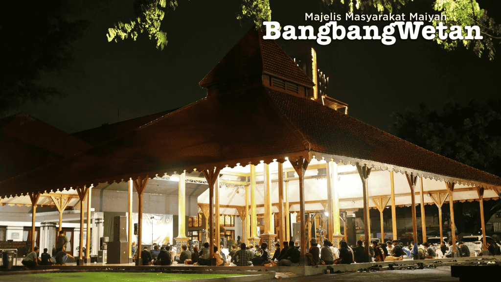 Malam itu, BangbangWetan hadir di Titik Nol Surabaya. Forum digelar di taman terbuka Pos Bloc. Di forum terbuka ini, fantadziris-sa’ah, yang semula duduk di mimbar, kini sedang berjalan perlahan. Jamaah dengan berbagai rupa pun datang. Beberapa duduk berkelompok di rerumputan. Di sisi kanan, tampak deretan street coffee dan Kedai Kopi Bu Sofi berjejer rapi disertai dengan stand Pojok Ilmu.
