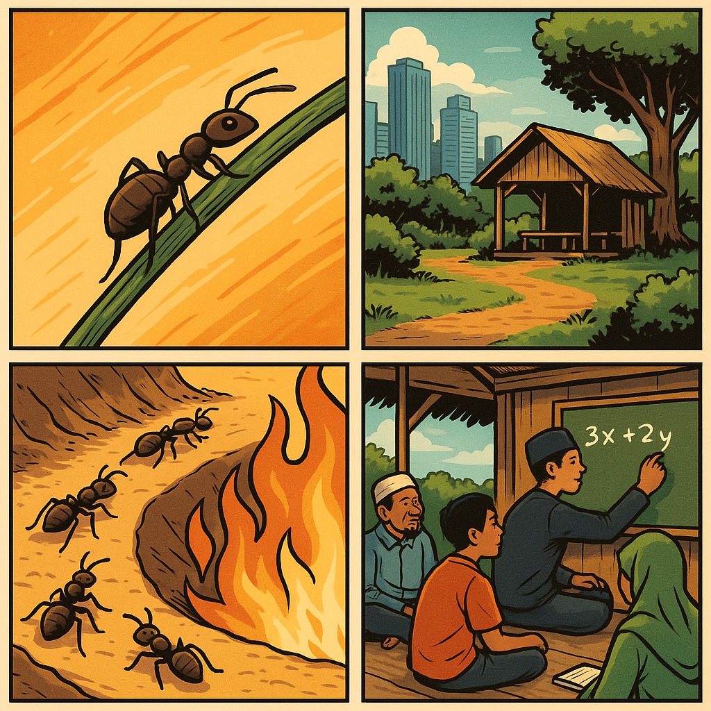 Kelas matematika adalah kegiatan kecil yang kita kerjakan. Hal ini terinspirasi dari kisah sekor semut yang memadamkan api saat Nabi Ibrahim dibakar.