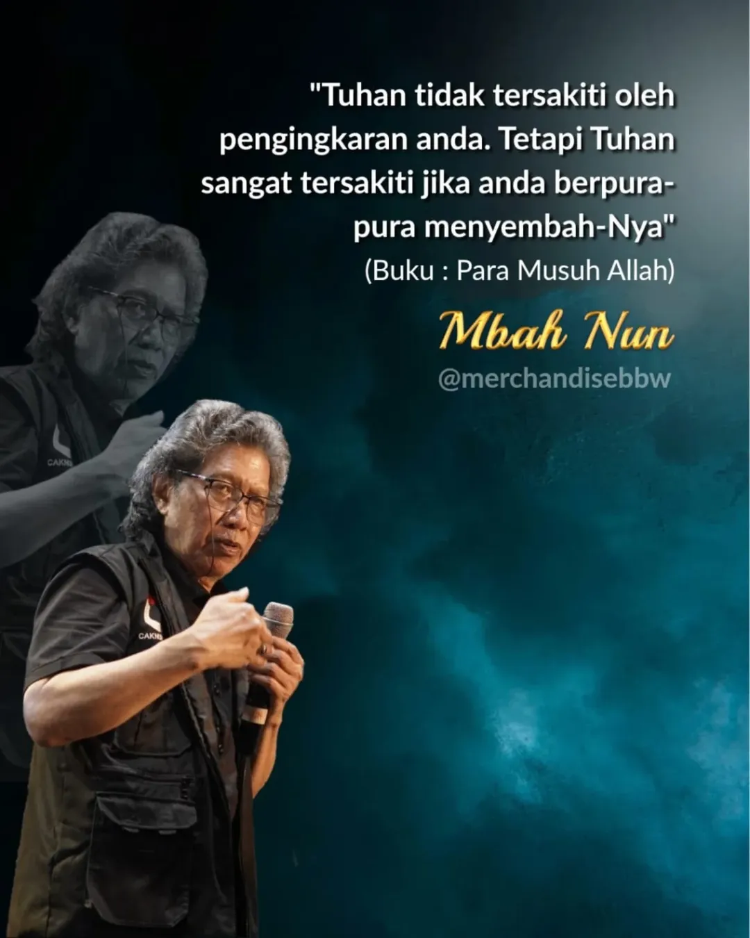 “Nah, begitu juga sholat. Jangan salahkan sholatnya kalau hasilnya zonk. Salahkan racunnya. Racun yang masuk lewat niat. Racun yang bernama riya, ujub, pamrih, bahkan ambisi politik.”