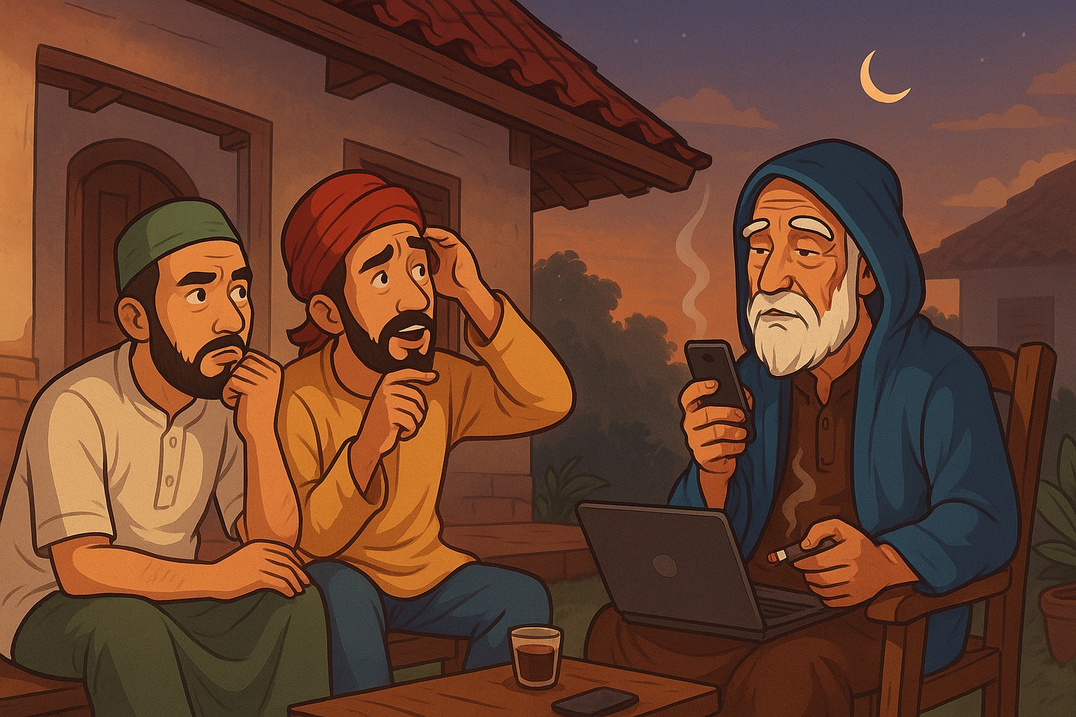 Mbah Asmojo menghisap rokoknya lagi, lalu tersenyum, “Sekarang, sholat kalian itu karena apa? Beneran karena Allah, atau cuma karena takut dimarahin emak?”